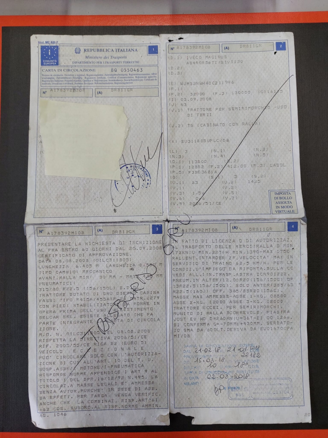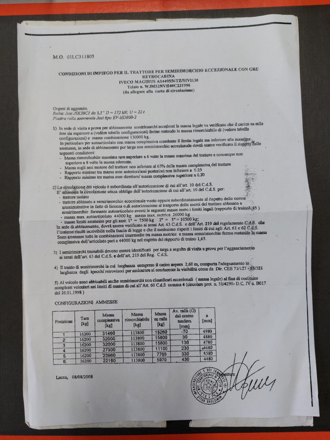 MOTORE FUORI USO, SOSPENSIONI PNEUMATICHE POSTERIORI.
